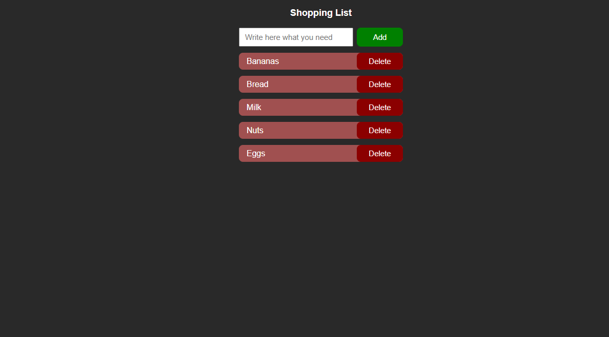 A simple web application to create and manage a shopping list using HTML, CSS, and JavaScript. The list persists using localStorage, so your items stay saved even after closing the browser.